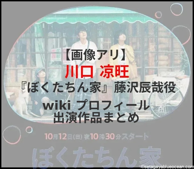及川光博が主演する10月12日スタートのドラマ『ぼくたちん家(ち)』(日本テレビ系/毎週日曜22時30分)心優しきゲイ・波多野玄一(及川光博)を慕うアルバイト・藤沢辰哉役を川口凉旺さんが演じる。川口凉旺さんのプロフィールは? これまで出演した作品は?