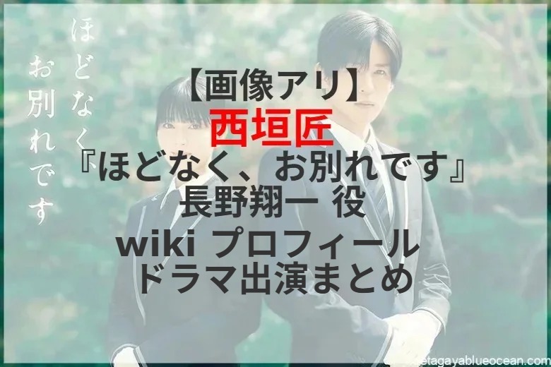 俳優の浜辺美波とSnow Manの目黒蓮がW主演し、来年2月6日に公開される映画『ほどなく、お別れです』。とある理由で父・正史(原田泰造)が離れて暮らし、母・桂子(野波麻帆)は不慮の事故で亡くなってしまう長野家。父親を恨んでいる息子・翔一役を西垣匠さんが演じる。西垣匠さんのプロフィール? これまで出演したテレビドラマは?