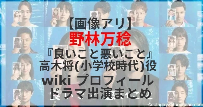 10月11日[土]スタートする間宮祥太朗&新木優子がW主演を務める新土曜ドラマ「良いこと悪いこと」(毎週土曜夜9:00-9:54、日本テレビ系) 小学生の時はクラスのリーダー的存在で「キング」と呼ばれ、現在は実家の塗装屋を継いだ一児の父・高木将(間宮祥太朗)の小学校時代役を野林万稔さんが演じる。野林万稔さんのプロフィールは? これまで出演したテレビドラマは?