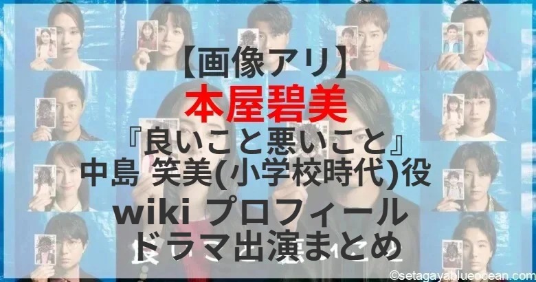 10月11日[土]スタートする間宮祥太朗&新木優子がW主演を務める新土曜ドラマ「良いこと悪いこと」(毎週土曜夜9:00-9:54、日本テレビ系) ホステスの「ニコちゃん」こと中島笑美(松井玲奈)の小学校時代役を本屋碧美さんが演じる。本屋碧美さんのプロフィールは? これまで出演したテレビドラマは?