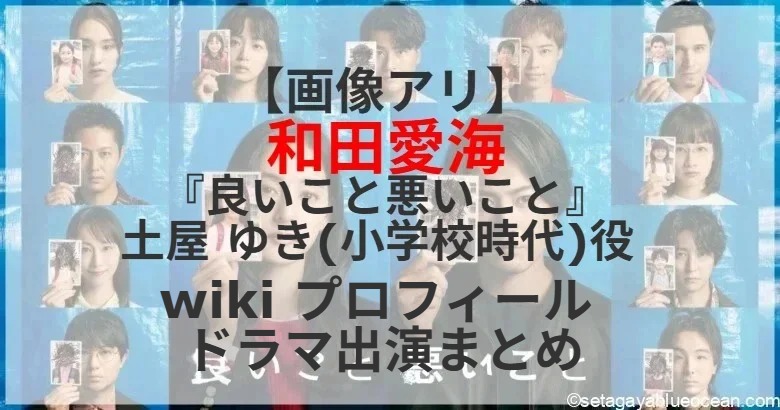 10月11日[土]スタートする間宮祥太朗&新木優子がW主演を務める新土曜ドラマ「良いこと悪いこと」(毎週土曜夜9:00-9:54、日本テレビ系) 専業主婦の「ゆっきー」こと土屋ゆき(剛力彩芽) の小学校時代役を和田愛海さんが演じる。和田愛海さんのプロフィールは? これまで出演したテレビドラマは?