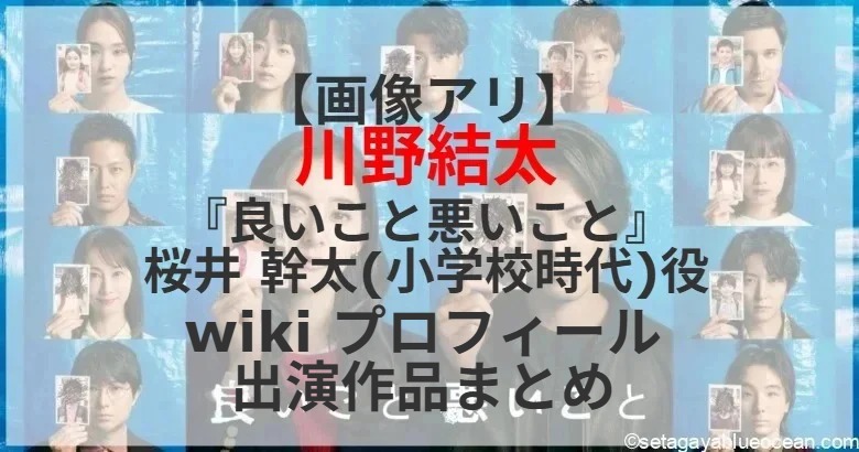 10月11日[土]スタートする間宮祥太朗&新木優子がW主演を務める新土曜ドラマ「良いこと悪いこと」(毎週土曜夜9:00-9:54、日本テレビ系) 居酒屋「北の桜」店主の「カンタロー」こと桜井幹太(工藤阿須加) の小学校時代役を川野結太さんが演じる。川野結太さんのプロフィールは? これまで出演した作品は?