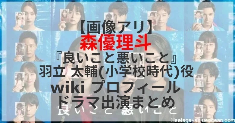 10月11日[土]スタートする間宮祥太朗&新木優子がW主演を務める新土曜ドラマ「良いこと悪いこと」(毎週土曜夜9:00-9:54、日本テレビ系) ニートの「ちょんまげ」こと羽立太輔(森優作)の小学校時代役を森優理斗さんが演じる。森優理斗さんのプロフィールは? これまで出演したテレビドラマは?