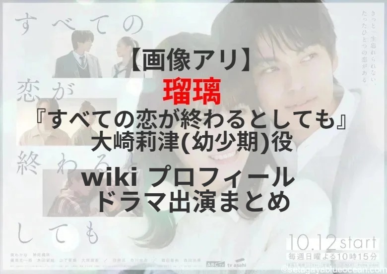 俳優・葵わかなと神尾楓珠がW主演を務める、ABCテレビ・テレビ朝日系日10新ドラマ『すべての恋が終わるとしても』(毎週日曜 後10:15)大崎真央(神尾楓珠)の妹・大崎莉津(本田望結)の幼少期役を子役・瑠璃さんが演じる。瑠璃さんのプロフィールは? これまで出演したテレビドラマは?