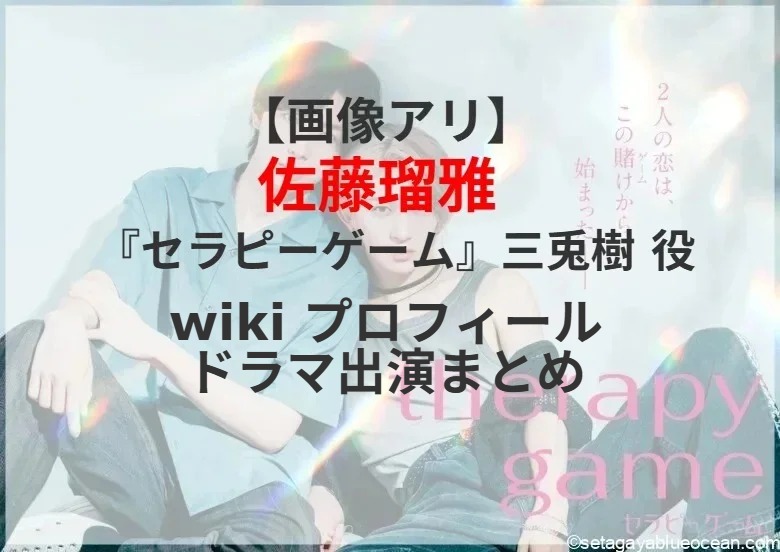 ダンスボーカルグループ「MAZZEL」のNAOYA(22)と、オルタナティブ歌謡舞踊集団「龍宮城」の冨田侑暉(20)が日本テレビの連続ドラマ「セラピーゲーム」(10月29日スタート、水曜・深夜0時59分)にダブル主演する。ツンデレフォトグラファー・三兎湊の兄で生嶋翔平(HAYATO(XY))の恋人・三兎樹役を佐藤瑠雅さんが演じる。佐藤瑠雅さんのプロフィール? これまで出演したテレビドラマは?