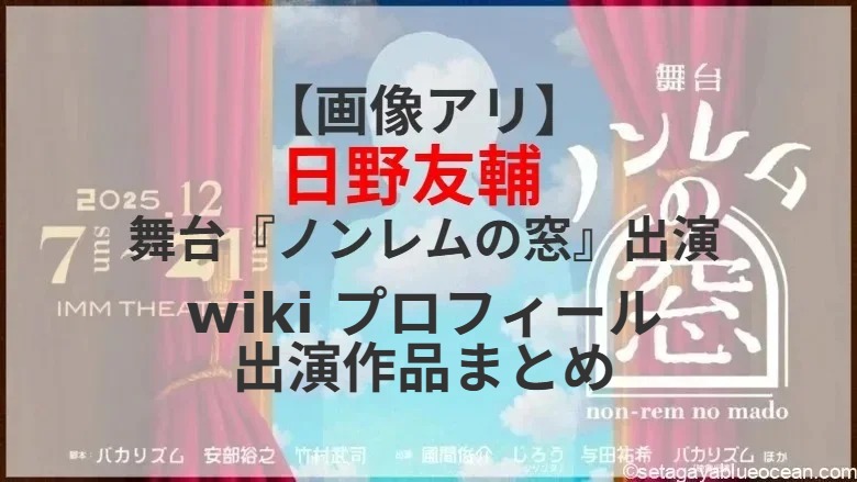 『仮面ライダーガヴ』にて辛木田絆斗/仮面ライダーヴァレン役を演じて注目を集めた若手俳優・日野友輔が、12月に東京・IMM THEATERにて上演される舞台「ノンレムの窓」に出演する。