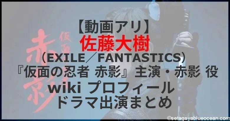 横山光輝の人気忍者漫画『仮面の忍者 赤影』を実写化し、『スーパー戦隊』シリーズをはじめとするヒーロー番組の元祖となった伝説の特撮時代劇『仮面の忍者 赤影』(1967年)が装いもあらたに復活。10月26日深夜0時10分スタート・テレビ朝日系連続ドラマ『仮面の忍者 赤影』(毎週日曜 深0:10)主人公・赤影を佐藤大樹(EXILE/FANTASTICS)が演じる。佐藤大樹さんのプロフィールは? これまで出演したテレビドラマは?