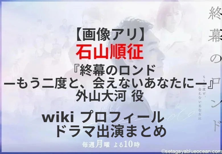 草彅剛が主演する2025年10月スタートのカンテレ・フジテレビ系・月10ドラマ『終幕(しゅうまく)のロンド —もう二度と、会えないあなたに—』。草彅剛さんが挑戦するのは、遺品から汲み取った故人の想いを遺族に伝える“遺品整理人”。 御厨利人(要潤)の秘書・外山大河役を石山順征さんが演じる。さて、石山順征さんのプロフィール? これまで出演したテレビドラマは?