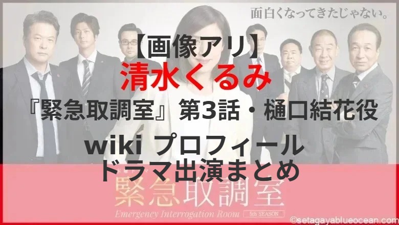 天海祐希主演の木曜ドラマ「緊急取調室」(毎週木曜夜9:00-9:54、テレビ朝日系)第3話。動画配信者・樋口結花役を清水くるみさんが演じる。清水くるみさんのプロフィールは? これまで出演したテレビドラマは?