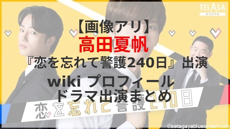 藤原丈一郎(なにわ男子)が、「恋する警護24時 season2」のスピンオフ「恋を忘れて警護240日」で主演。前編が本日11月14日24時15分、後編が11月21日24時15分にTELASA(テラサ)で配信。恋愛から遠ざかっていた原湊(藤原丈一郎)。警護チームの椎谷厚徳、久我一刀、村田耕太らと飲んでいたある夜、恋愛トークで盛り上がる椎谷たちに触発される。湊が「本当にこれでいいのか?」と感じ始めた矢先、恋の始まりのサインのような小さな奇跡が発生。運命を感じた湊は動き出す。このスピンオフ「恋を忘れて警護240日」に高田夏帆さん出演。高田夏帆さんのプロフィールは? これまで出演したテレビドラマは?