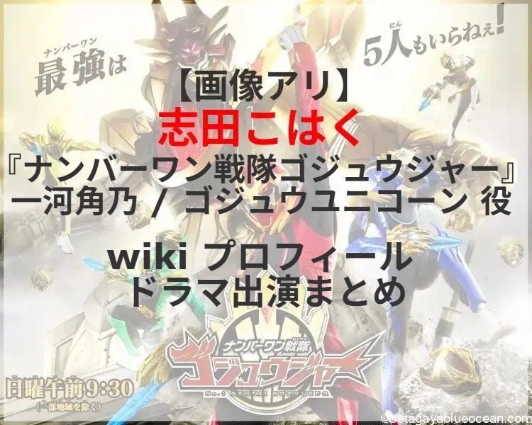 テレビ朝日系スーパー戦隊シリーズ「ナンバーワン戦隊ゴジュウジャー」(毎週日曜9時30分~)のヒロインの後任に、女優の志田こはくが決定。11月30日放送の第40話から、一河角乃(いちかわ・すみの)/ゴジュウユニコーン役で、志田こはくさんが出演することを発表。志田こはくさんのプロフィールは? これまで出演したテレビドラマは?