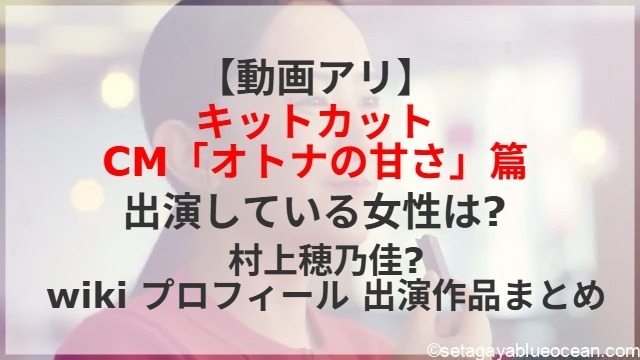 CMキットカット「オトナの甘さ」篇に出演している女性は、女優・村上 穂乃佳さん。