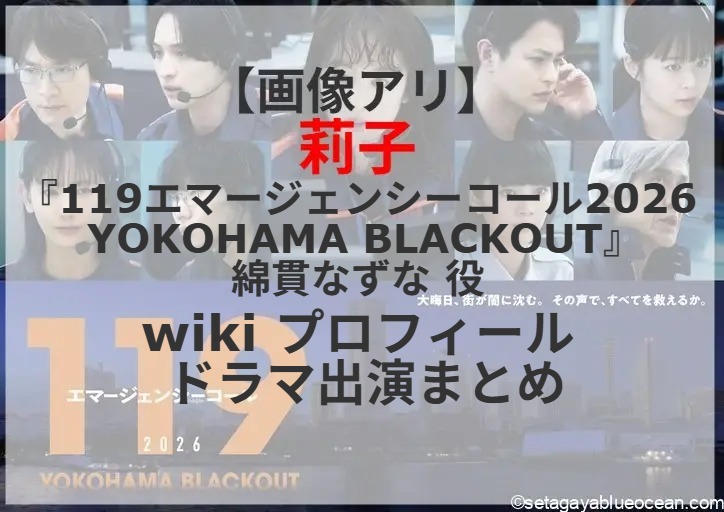 フジテレビ系にて2026年1月3日21時30分より放送される清野菜名主演のSPドラマ『119エマージェンシーコール2026 YOKOHAMA BLACKOUT』司令課3係の指令管制員である綿貫なずな役を莉子さんが演じる。莉子さんのプロフィールは? これまで出演したテレビドラマは?
