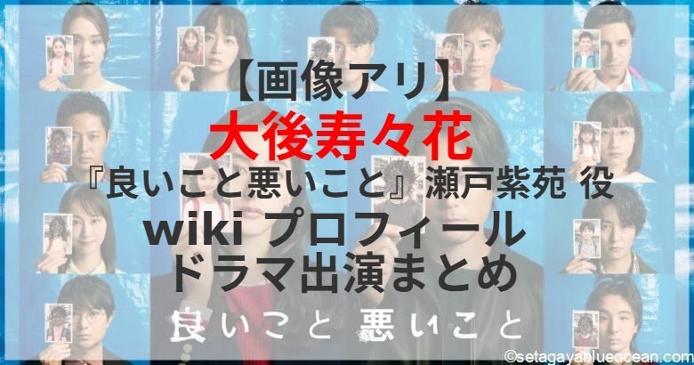 10月11日[土]スタートしている間宮祥太朗&新木優子がW主演を務める新土曜ドラマ「良いこと悪いこと」(毎週土曜夜9:00-9:54、日本テレビ系) 5年生の頃に高木(間宮祥太朗)たちと同じクラスだった瀬戸紫苑役を大後寿々花さんが演じる。大後寿々花さんのプロフィールは? これまで出演したテレビドラマは?