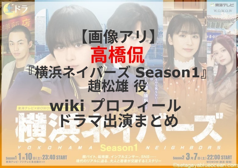 なにわ男子・大西流星とtimelesz・原嘉孝がW主演を務める『東海テレビ×WOWOW 共同製作連続ドラマ 横浜ネイバーズ Season1』(東海テレビ・フジテレビ系 2026年1月10日(土)スタート 毎週土曜 午後11時40分~深夜0時35分)。大西流星さん(なにわ男子)演じる主人公の幼馴染・中華料理屋の息子・趙松雄役を高橋侃さんが演じる。高橋侃さんのプロフィールは? これまで出演したテレビドラマは?