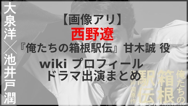 大泉洋が主演を務め、池井戸潤氏の小説を連続ドラマ化する「俺たちの箱根駅伝」。武蔵中央大学3年生の甘木誠役を西野遼さんが演じる。西野遼さんのプロフィールは? これまで出演したテレビドラマは?