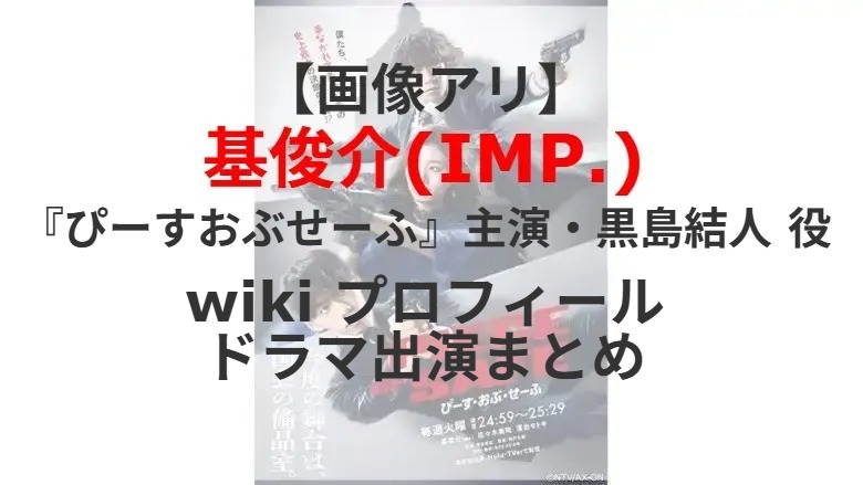 IMP.基俊介(29)、元日向坂46佐々木美玲(26)、俳優落合モトキ(35)がトリプル主演する日本テレビ系ドラマ「ぴーすおぶせーふ」(3月10日スタート、火曜深夜0時59分)。“究極の事なかれ主義者”職業は公務員・黒島結人役を基俊介(IMP.)さんが演じる。基俊介(IMP.)さんのプロフィールは? これまで出演したテレビドラマは?