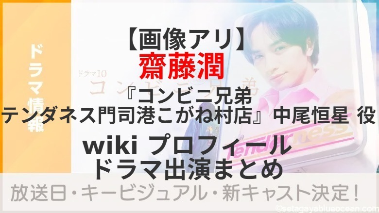 中島健人が主演を務めるドラマ10「コンビニ兄弟 テンダネス門司港こがね村店」の放送開始日が4月28日に決定。中尾光莉(田中麗奈)の息子。地元の高校に通っている高校生・中尾恒星役を齋藤潤さんが演じる。齋藤潤さんのプロフィールは? これまで出演したテレビドラマは?