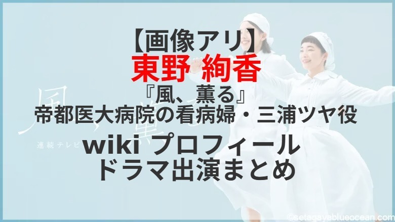 見上愛さんと上坂樹里さんがダブル主演を務める2026年度前期のNHK連続テレビ小説(朝ドラ)「風、薫る」。婦人科に勤めているが、子供が苦手な帝都医大病院の看病婦・三浦ツヤ役を東野絢香さんが演じる。東野絢香さんのプロフィールは? これまで出演したテレビドラマは?