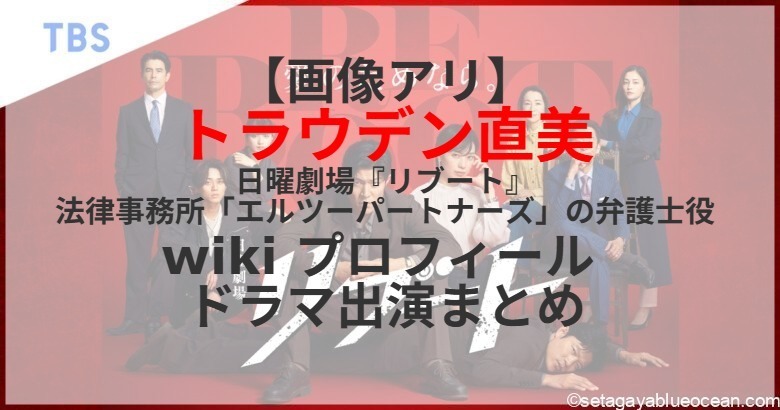 俳優の鈴木亮平が主演、戸田恵梨香が共演する、TBS系日曜劇場『リブート』(2026年1月スタート 毎週日曜 後9:00)妻殺しの罪を着せられたパティシエ・早瀬陸(鈴木亮平)が、自らの潔白を証明するため、警視庁の悪徳刑事・儀堂歩の顔に“リブート”し、真実を追うという“エクストリームファミリーサスペンス”。法律事務所「エルツーパートナーズ」の弁護士役をトラウデン直美さんが演じる。トラウデン直美さんのプロフィールは? これまで出演したテレビドラマは?