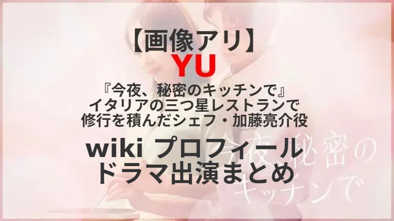 木南晴夏が主演を務め、高杉真宙が共演する木曜劇場「今夜、秘密のキッチンで」(フジテレビ系 2026年4月9日(木)スタート 毎週木曜 22:00~22:54)。女優時代の坪倉あゆみ(木南晴夏)のファンで、イタリアの三つ星レストランで修行を積んだシェフ・加藤亮介役をYUさんが演じる。YUさんのプロフィールは? これまで出演したテレビドラマは?