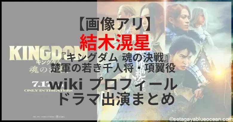 「キングダム」シリーズ。中華統一という大義を胸に大将軍への道を突き進む信(山崎賢人)が、秦の国家存亡を懸けて“魂の決戦”に挑んでいく、その最新作となる『キングダム 魂の決戦』が7月17日(金)より公開。天才軍師・李牧(小栗旬)が率いる“合従軍”に名を連ねる一騎打ちで無類の強さを誇る楚軍の若き千人将・項翼役を結木滉星さんが演じる。結木滉星さんのプロフィールは? これまで出演したテレビドラマは?