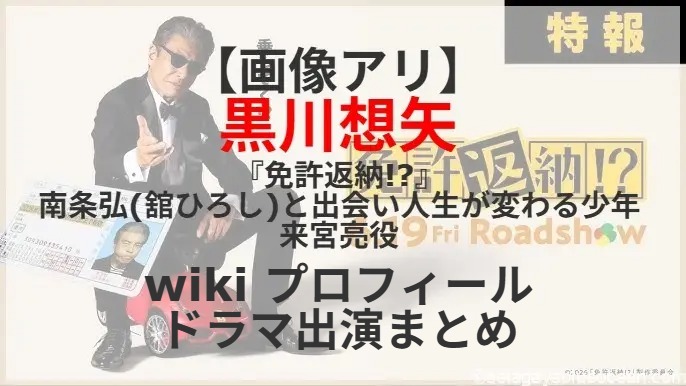 6月19日(金)に公開される舘ひろしの主演映画「免許返納!?」。古希(70歳)を迎えた映画スター南条弘(舘ひろし)が、ひょんなことから免許返納騒動に巻き込まれ、自身のダンディーさと人生最大のピンチの間で奮闘する姿を描いたコメディ映画。南条との出会いで大きく人生が変わっていく少年・来宮亮役を黒川想矢さんが演じる。黒川想矢さんのプロフィールは? これまで出演したテレビドラマは?