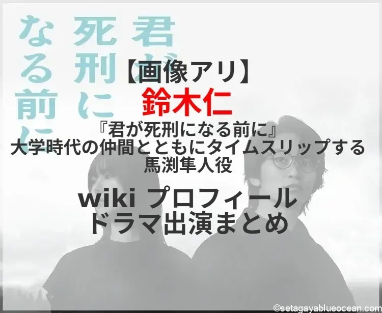 加藤清史郎が主演を務める「君が死刑になる前に」(毎週木夜11:59-0:54、読売テレビ・日本テレビ系/Leminoほかにて配信)。大学時代の映画サークル仲間である坂部琥太郎(加藤清史郎)、月島凛(与田祐希)とともに7年前にタイムスリップする馬渕隼人役を鈴木仁さんが演じる。鈴木仁さんのプロフィールは? これまで出演したテレビドラマは?