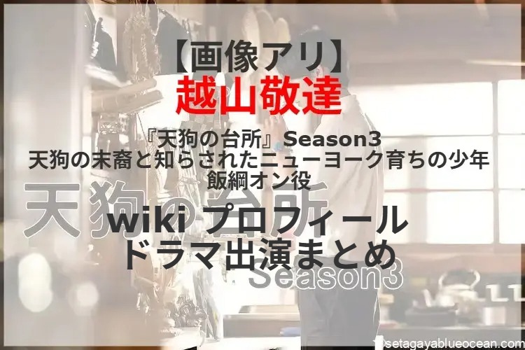 田中相の漫画を実写化するBS-TBSの連続ドラマ「天狗の台所」のSeason3が今秋、木曜ドラマ23枠(毎週木曜よる11時~11時30分)で放送される。天狗の末裔たちが織り成す丁寧な暮らしを、壮観な風景と香り立つ料理と四季折々の美しい映像で描く本シリーズ。突然自分が天狗の末裔と知らされたニューヨーク育ちの少年・飯綱オン役を越山敬達さんが演じる。越山敬達さんのプロフィールは? これまで出演したテレビドラマは?