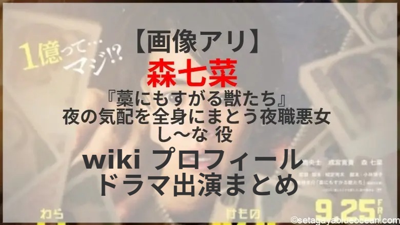 鈴鹿央士主演の映画「藁にもすがる獣たち」(城定秀夫監督、9月25日公開)。小説家・曽根圭介氏の同名小説が原作。大学生YouTuber・佐藤寛治(鈴鹿央士)が偶然手にしてしまった現金1億円を巡って人々が欲望むき出しの争奪戦を繰り広げるマネーサバイバル。神出鬼没かつ金至上主義、夜の気配を全身にまとう夜職悪女・し~な役を森七菜さんが演じる。森七菜さんのプロフィールは? これまで出演したテレビドラマは?
