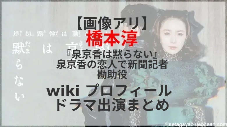 高橋一生が主演を務める人気ドラマシリーズ『岸辺露伴は動かない』の最新作『泉京香は黙らない』が、5月4日午後9時30分にNHK総合で放送される。漫画編集者・泉京香(飯豊まりえ)が担当する新人漫画家・西恩ミカ(堀田真由)を巡る不可解な出来事が描かれる。泉京香の恋人で新聞記者の勘助役を橋本淳さんが演じる。橋本淳さんのプロフィールは? これまで出演したテレビドラマは?