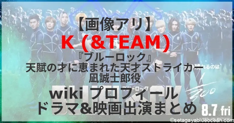 人気漫画『ブルーロック』の実写映画で俳優の高橋文哉(25)が主演を務める映画「ブルーロック」(瀧悠輔監督、8月7日公開)。天賦の才に恵まれた天才ストライカーの凪誠士郎役をK (&TEAM)さんが演じる。K (&TEAM)さんのプロフィールは? これまで出演したテレビドラマ&映画は?