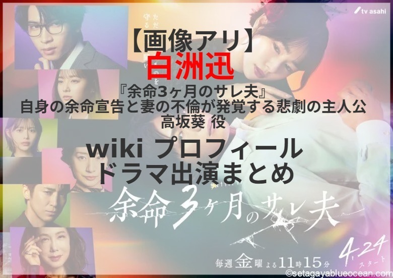 俳優の桜井日奈子さんがヒロインを務めるテレビ朝日系金曜ナイトドラマ「余命3ヶ月のサレ夫」(金曜午後11時15分)。自身の余命宣告と妻(桜井日奈子、29)の不倫が発覚する悲劇の主人公・高坂葵役を白洲迅さんが演じる。白洲迅さんのプロフィールは? これまで出演したテレビドラマは?