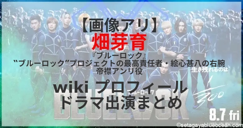人気漫画『ブルーロック』の実写映画で俳優の高橋文哉(25)が主演を務める映画「ブルーロック」(瀧悠輔監督、8月7日公開)。“ブルーロック(青い監獄)”プロジェクトの最高責任者・絵心甚八の右腕・帝襟(ていえり)アンリ役を畑芽育さんが演じる。畑芽育さんのプロフィールは? これまで出演したテレビドラマは?