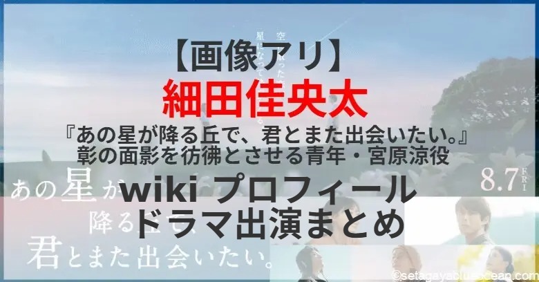 大ヒット映画『あの花が咲く丘で、君とまた出会えたら。』の続編にして完結編、映画『あの星が降る丘で、君とまた出会いたい。』。戦時中の記憶と彰(水上恒司)への消えない想いを抱き続ける百合(福原遥)の前に、彼女に恋心を寄せ、どこか彰の面影を彷彿とさせる青年・涼役を細田佳央太さんが演じる。細田佳央太さんのプロフィールは? これまで出演したテレビドラマは?