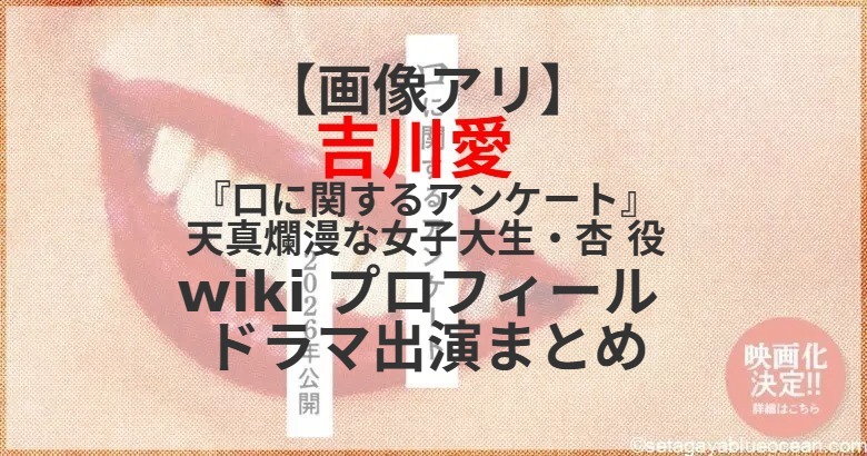 板垣李光人が主演を務める映画『口に関するアンケート』の公開日が7月3日(金)に決定。肝だめしに参加する陽気で天真爛漫な女子大生・杏役を吉川愛さんが演じる。吉川愛さんのプロフィールは? これまで出演したテレビドラマは?