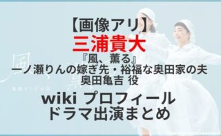 J_Entertainment【画像アリ】三浦貴大 『風、薫る』奥田亀吉 役 wiki プロフィール ドラマ出演まとめ 見上愛と上坂樹里の二人を主人公にした2026年度前期連続テレビ小説『風、薫る』。主人公・一ノ瀬りん(見上愛)の嫁ぎ先・運送業を営む裕福な奥田家の夫・亀吉役を三浦貴大さんが演じる。三浦貴大さんのプロフィールは? これまで出演したテレビドラマは... 2026.04.03J_Entertainment