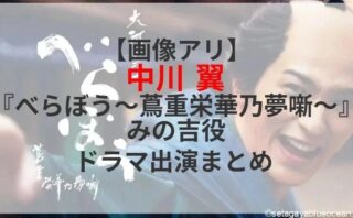 J_Entertainment【画像アリ】中川 翼 大河ドラマ3作目『べらぼう〜蔦重栄華乃夢噺〜』みの吉 役 ドラマ出演まとめ 横浜流星が主演を務める2025年のNHK大河ドラマ『べらぼう~蔦重栄華乃夢噺~』地本問屋、丸屋の手代・みの吉役を中川翼さんが演じる。さて、中川翼さんのプロフィール? これまで出演したテレビドラマは?中川 翼 大河ドラマ3作目『べらぼう〜蔦重... 2025.06.30J_Entertainment