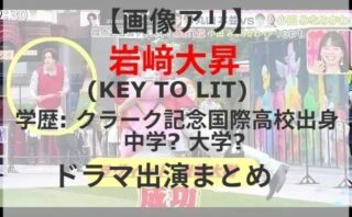 J_Entertainment【画像アリ】岩﨑大昇(KEY TO LIT) 学歴: クラーク記念国際高校出身 中学? 大学? ドラマ出演まとめ 「ラヴィット!」生放送中にジュニア5人組「KEY TO LIT(キテレツ)」の岩崎大昇が転倒して骨折、全治6週間となった。まだジュニアではあるが今年2月に結成された5人組「KEY TO LIT(キテレツ)」のメンバーとして将来が期待されてい... 2025.06.11J_Entertainment