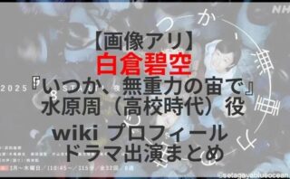 J_Entertainment【画像アリ】白倉碧空 『いつか、無重力の宙で』水原周(高校時代)役 wiki プロフィール ドラマ出演まとめ 2025年9月8日開始予定、NHK夜ドラ「いつか、無重力の宙で」。高校時代、「一緒に宇宙に行こう」と夢を語り合った天文部の女子4人組。 大人になってそれぞれの道を歩む中、ふと忘れていたかつての〈夢〉と再会する。高校時代・水原周(みずはら・あ... 2025.08.15J_Entertainment