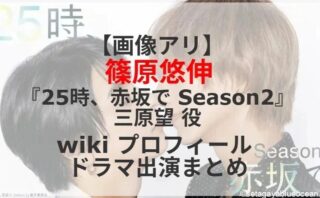 J_Entertainment【画像アリ】篠原悠伸 『25時、赤坂で Season2』三原望 役 wiki プロフィール ドラマ出演まとめ 俳優の駒木根葵汰(こまぎね・きいた/25)と新原泰佑(にいはら・たいすけ/24)がW主演を務めたテレ東系ドラマ「25時、赤坂で」の続編「25時、赤坂で Season2」(10月1日(水)スタート 毎週水曜深夜1時〜放送)が決定。羽山麻水(駒... 2025.10.10J_Entertainment